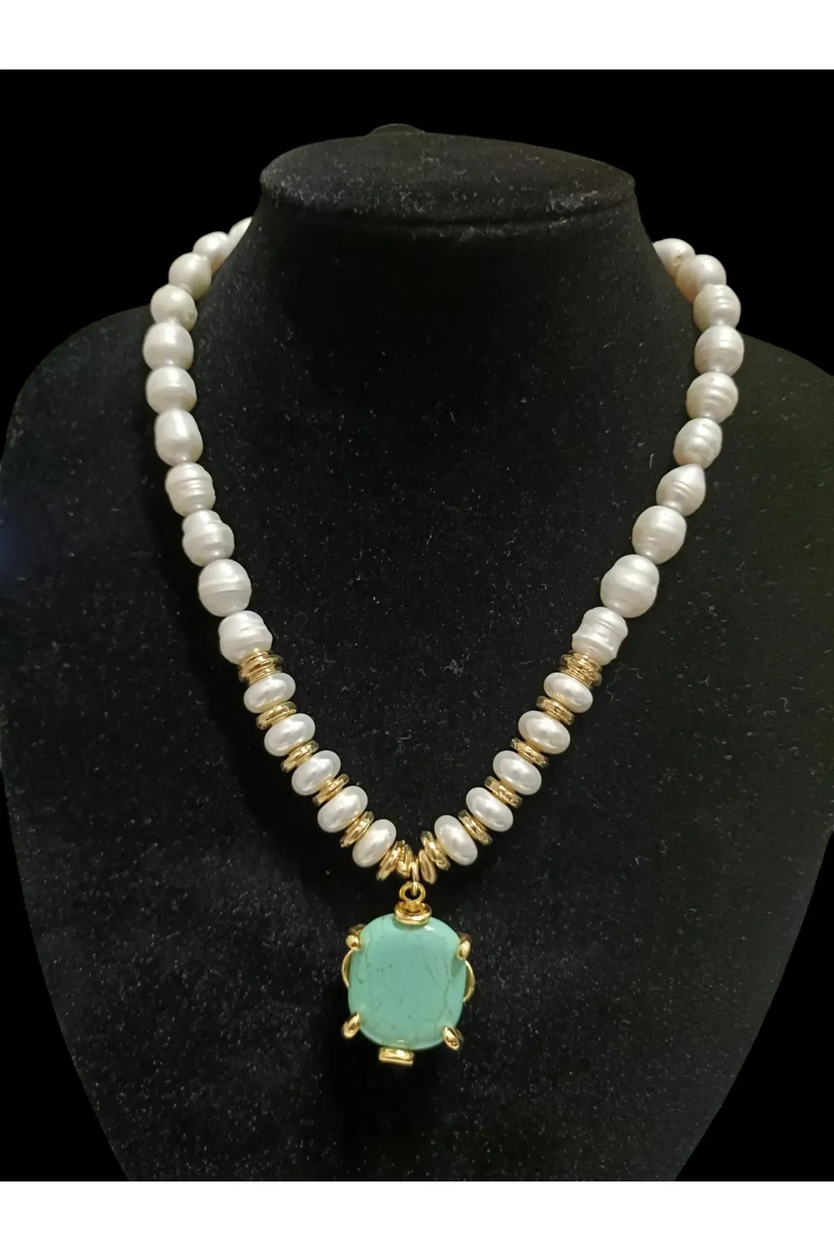 - Amazonit taşının eşsiz rengiyle süslenmiş, zarif barok inci kolye, her türlü özel gününüzde şıklığınızı tamamlar.; - Kutulu ambalajı sayesinde, bu değerli aksesuarınızı güvenle saklayabilir ve hediye olarak sunabilirsiniz.; - Kadın ve kızların beğenisine yönelik tasarlanmış olup, yetişkin yaş grubuna hitap eden zarafetiyle dikkat çeker.; - Gerçek inci kullanımıyla hem estetik hem de doğal bir görünüm sunan bu kolye, günlük kullanım için idealdir.